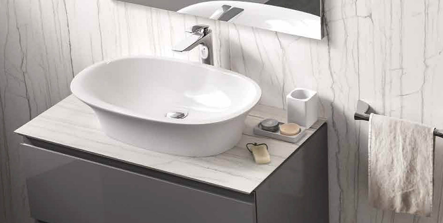 RAK-Precious provides luxury solutions for your washbasin area. With richer finishes, RAK-Precious provides a luxurious alternative to the functional ceramic white. Combining collections for floors, walls, bathroom furnishings and accessories, RAK-Precious offers complete solutions, enabling you to create your own personal idea of harmony. RAK-Precious includes a full range of porcelain tile integrated washbasins made with RAK Ceramics Maximus technology. Counter washbasins, drop-in washbasins or countertop slabs, each solution offers a unique combination of decorating styles in order to create a perfectly coordinated environment. Marble, stone and cement can be perfectly combined with the functionality of RAK-Joy bathroom vanities. RAK-Precious: unlimited harmony, unlimited imagination.