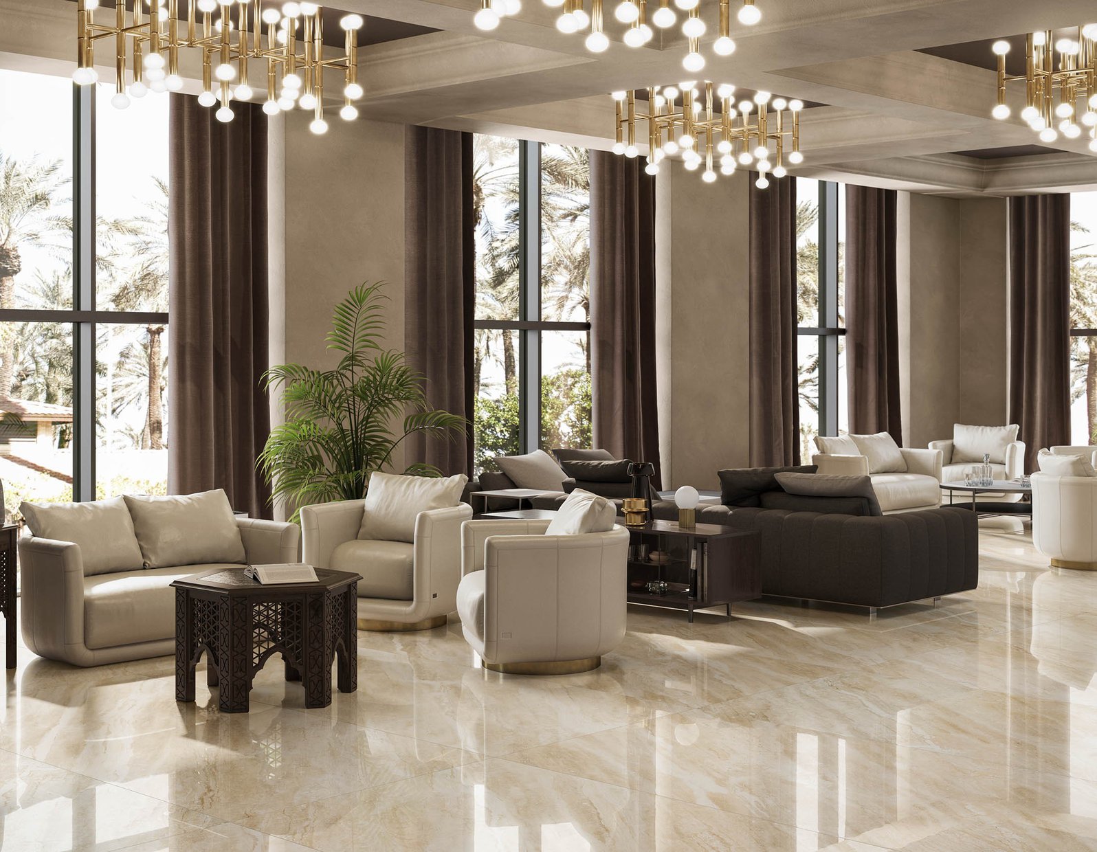 design your luxury interiors with a timeless charm. A wide and varied range of collections inspired by the elegance of marble to offer hundreds of solutions for residential areas, hospitality industry and business places. Revised classy marble and granite patterns displaying elegant veins which remodel your spaces, creating sophisticated ambiances. When you chose a marble looking tile collection, you chose the timeless beauty of one of the finest material in nature, combining it with all the advantages of porcelain and ceramic tiles in terms of performance, durability and ease of laying and maintenance.