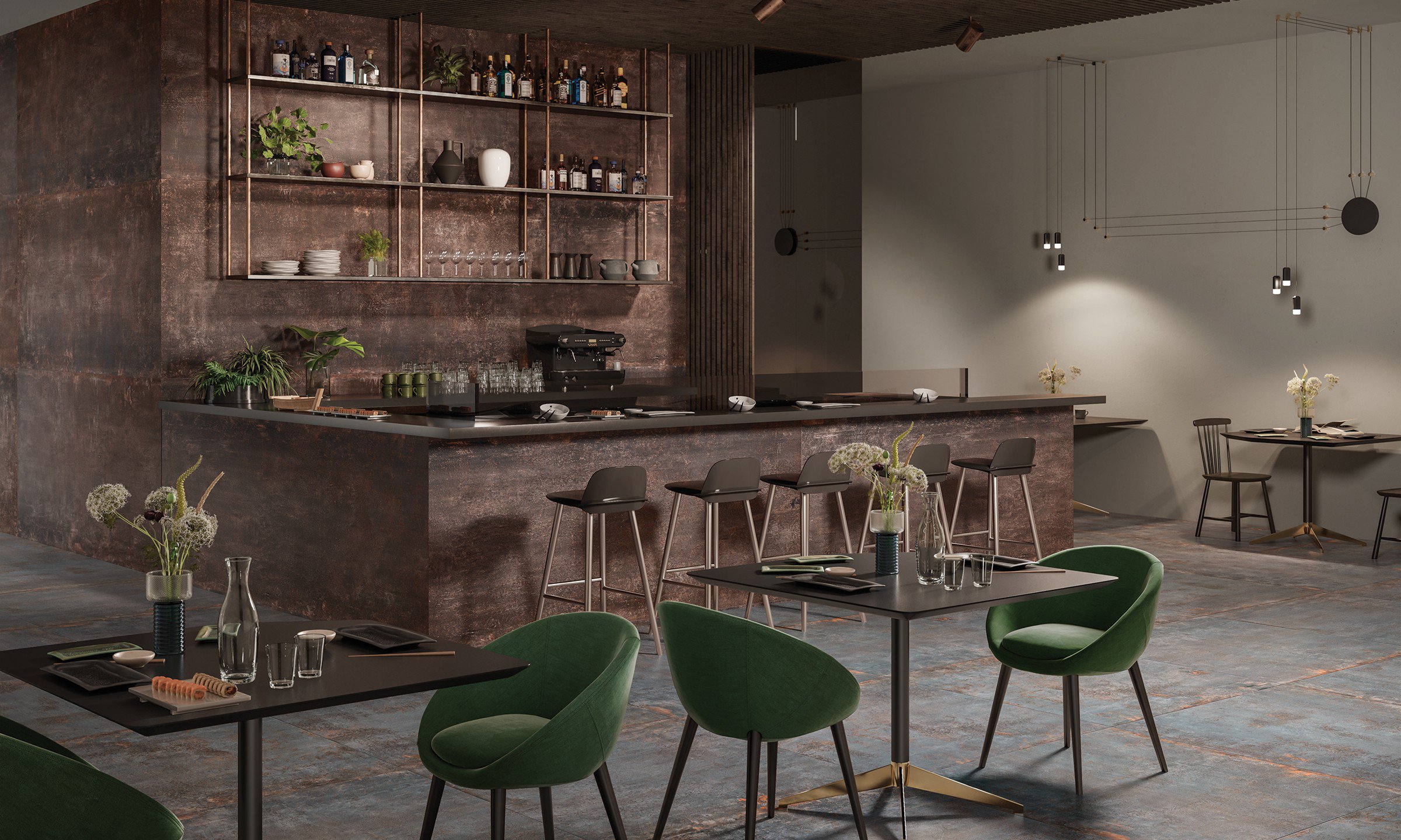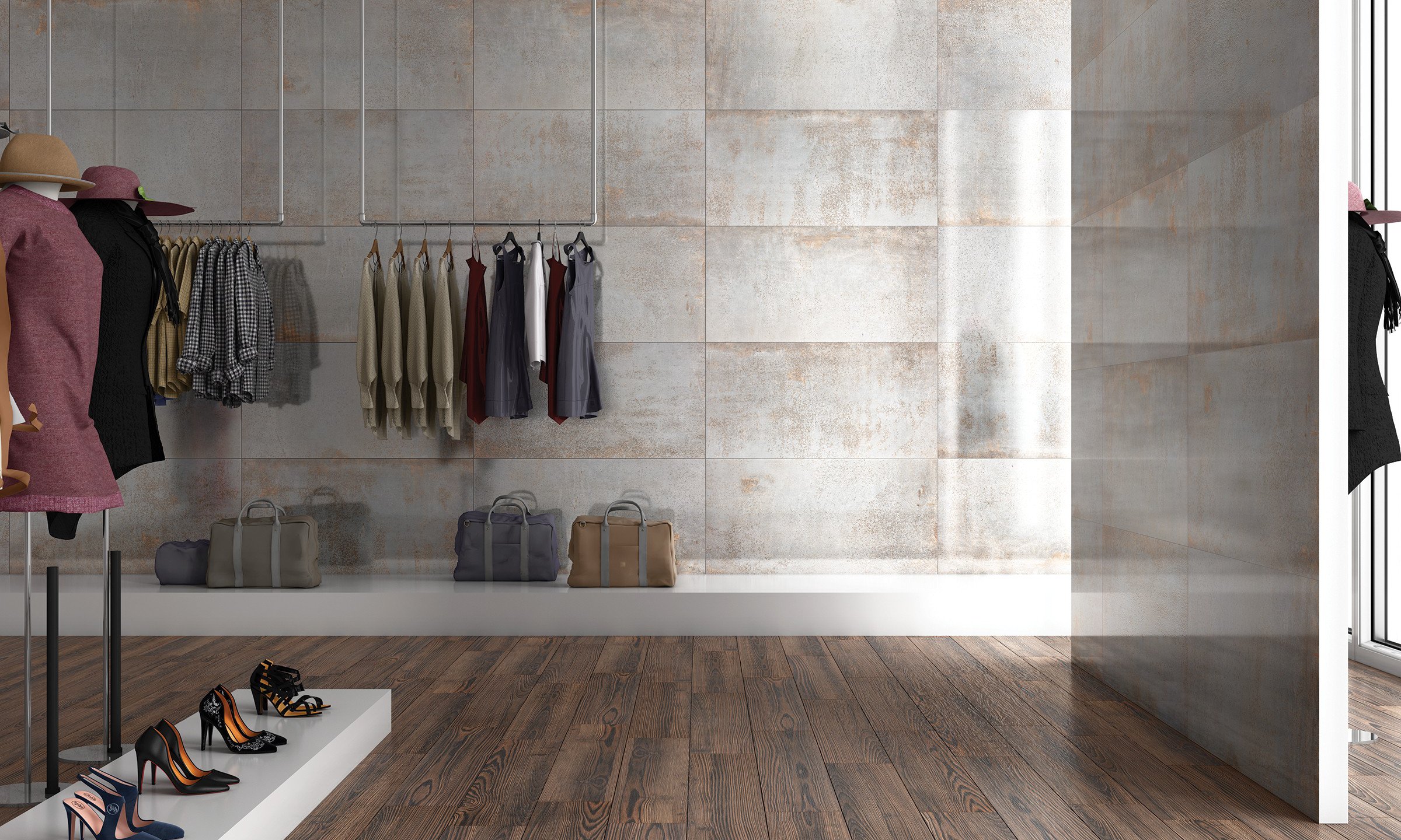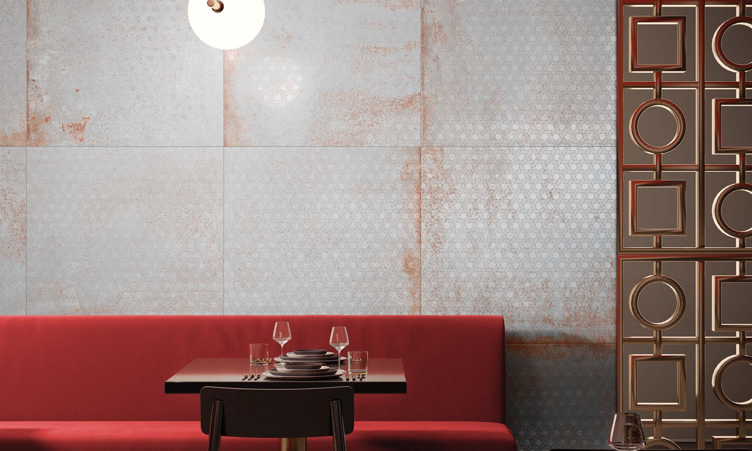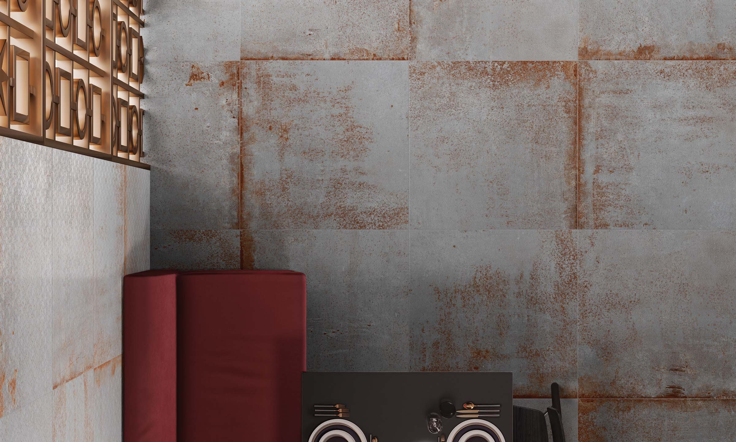 All the variations of a fascinating material. RAK Ceramics celebrates the dramatic effects and contrasting colours created during the ageing process of raw metal. With a bold and arresting appearance, the metal collection for wall and floor, is perfect for urban and industrial settings. Metal-effect tiles are offered in a wide range of plain and decor: roughly ground steel, aged bronze, rusty metal sheet, etc. The range perfectly matches with any interior and decorative style, giving life to spaces that are both elegant and surprising.