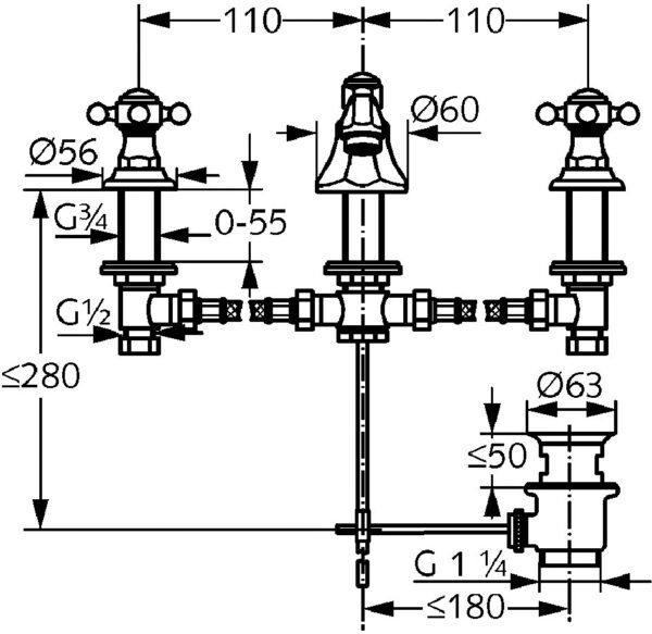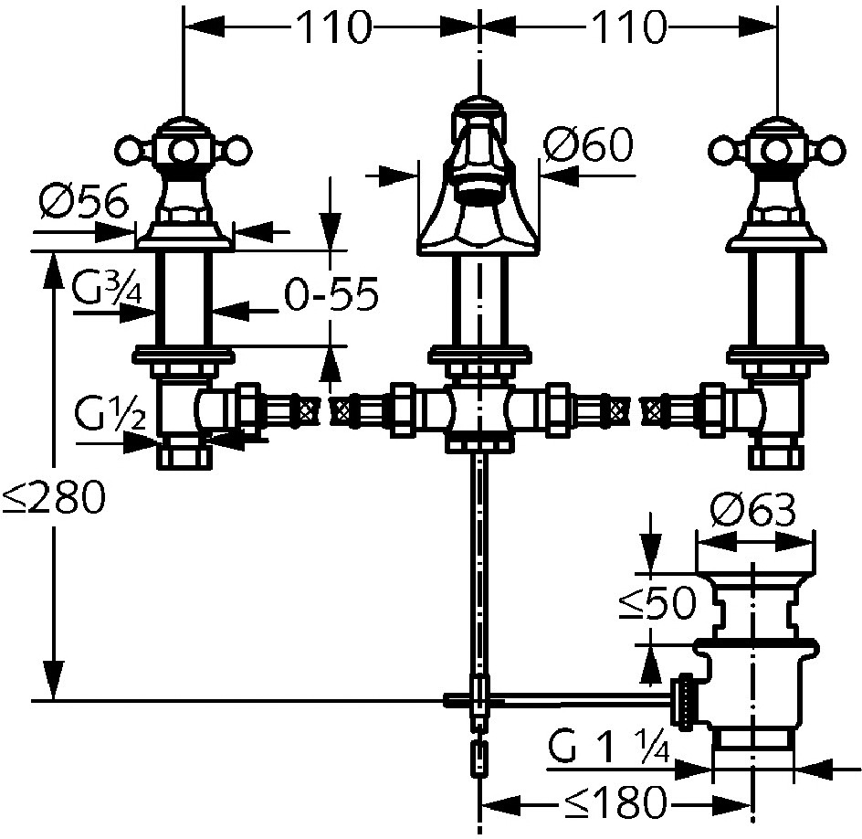 three hole deck mounted