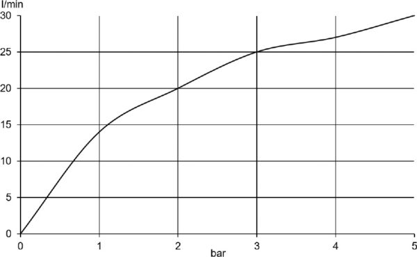 flow rate at 3 bar = 25 l/ min.