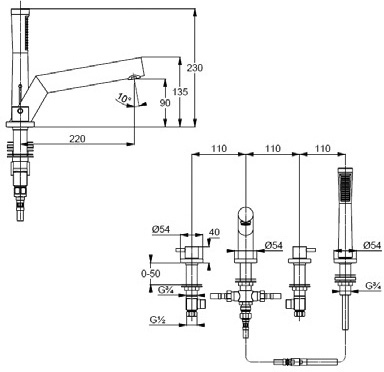 four hole tiles deck mounted installation