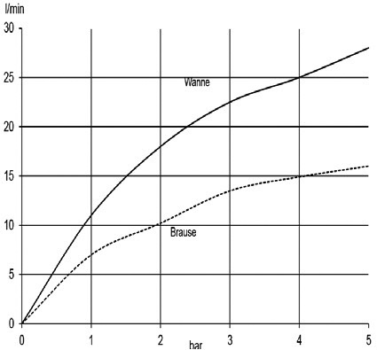 flow-rate bath 22.5 ltr/min/shower 13.5 ltr/min at 3 bar
