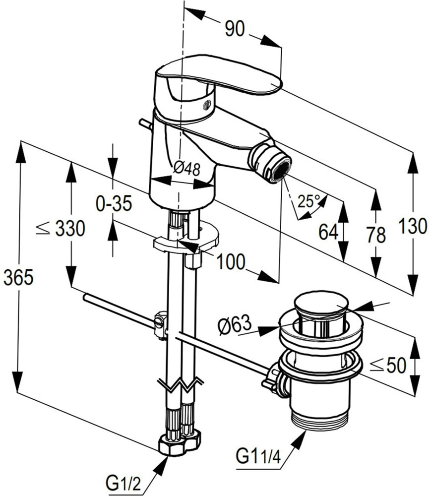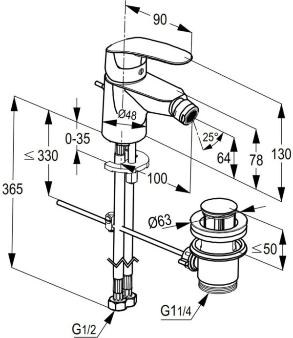 single lever bidet mixer DN 15